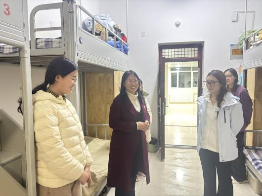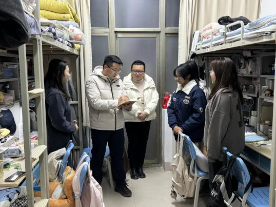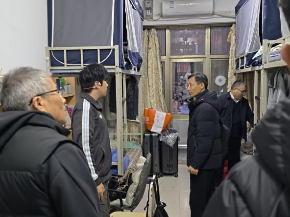 走访过程中,老师们细致查看各宿舍用电安全、消防设施及卫生状况,重点关注是否存在私拉电线、使用违规电器等现象,并对卫生死角进行了逐一排查。检查同时,老师们与同学们亲切交谈,耐心叮嘱大家要时刻树牢安全意识,自觉遵守宿舍管理规定,保持室内整洁、勤通风,共同维护好宿舍的安全与环境。老师们还鼓励宿舍成员之间要互相关心、互帮互助,携手共建团结友爱、健康向上的学习和生活共同体。