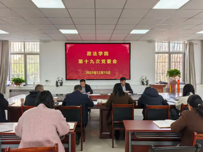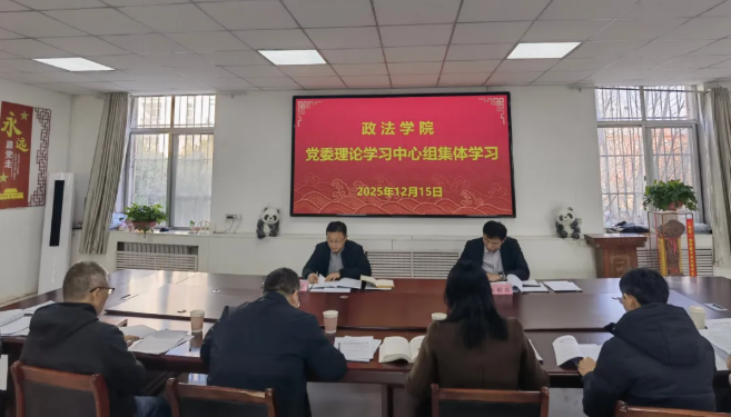 政法学院党委书记刘艳丽主持党委理论学习中心组集体学习并总结。会上,中心组集体学习了《习近平对全面依法治国工作作出重要指示》等内容,政法学院党委委员、副院长郭晓琴,团委副书记王胜军分别作重点发言。刘艳丽主持党委会,会议“第一议题”学习了习近平总书记在中共中央政治局第二十三次集体学习时发表的重要讲话精神,审议了《政法学院第二届教职工代表大会暨工会会员代表大会第二次会议筹备工作方案》等议题。政法学院院长李浩主持党政联席会,会议研究了《政法学院2025年工作总结与2026年工作计划》等议题。