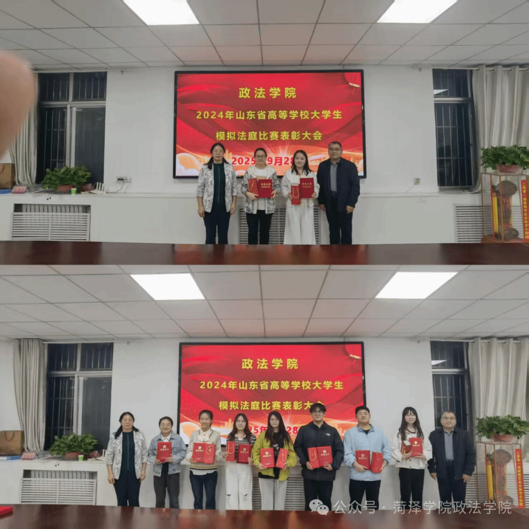9月28日,菏泽学院政法学院在1号教学楼201室举办2024年模拟法庭比赛总结表彰大会暨2025年选拔赛,政法学院党委书记刘艳丽、院长李浩出席,指导教师、全体辅导员、2024年获奖团队、2025年预赛选手参加。大会由政法学院副院长杨永主持。