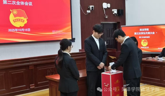 菏泽学院政法学院第三次学生代表大会圆满落幕,此次大会是青春的集结,更是使命的传承。未来,我们将会议共识转化为实干行动,在学业深耕中锤炼本领,在服务同学中践行担当,在助力学院高质量发展的征程上,书写政法学子的青春华章!